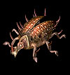 一种生活在牧场的飞行昆虫,它用长在前额的坚硬的角攻击你。如果你的攻击软弱无力,52—32的话是不能杀死它们的,因为它们身上有层硬壳。不过,你能够从硬壳与硬壳间的裂缝或空隙很容易地杀掉它们。它能给你42点经验值。 |