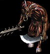 沃玛护卫在神殿中保卫沃玛教主,并因为重生的缘故而竭尽全力。他们是邪恶世界的生物,有着强大的魔法力量,该力量来自他们操纵的两种武器。一种是"焰魔剑",含有黑暗的魔法,"黑雪刀"则有强大的破坏力量。它们能难战胜,但要杀掉沃玛教主就必须先解决掉它们。 |